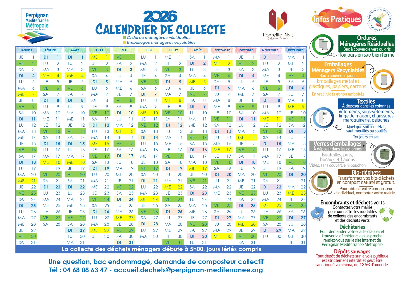 Dans un souci constant de préservation de l’environnement, du cadre de vie et d’une bonne gestion des déchets, la commune de Ponteilla-Nyls, en partenariat avec Perpignan Méditerranée Métropole, offre un service de tri et de collecte des déchets adapté aux besoins de l’administré.